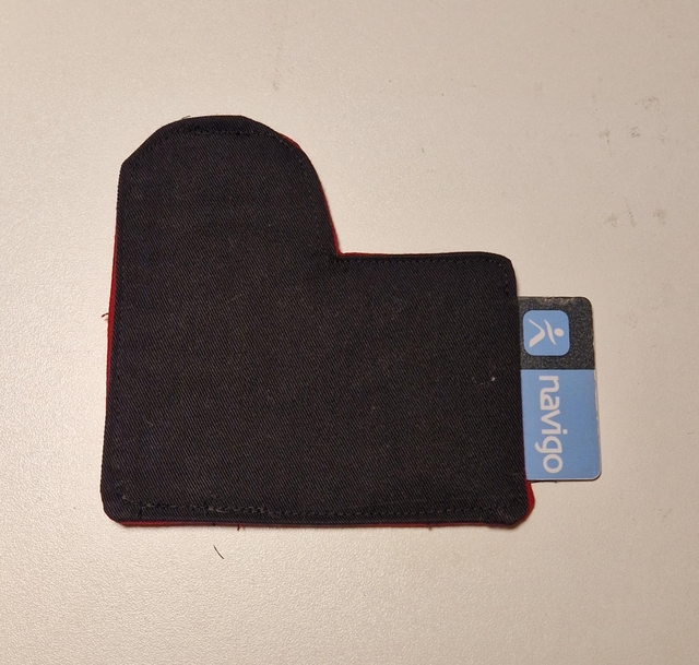 Les coutures ont été resserrés au niveau de l'ouverture pour empécher la carte de tomber, pour éviter une usure des couture il est préférable de ne mettre que des cartes dont l'utilisation peut se faire à travers le tissu pour éviter de forcer sur les coutures à chaque entrée-sortie.